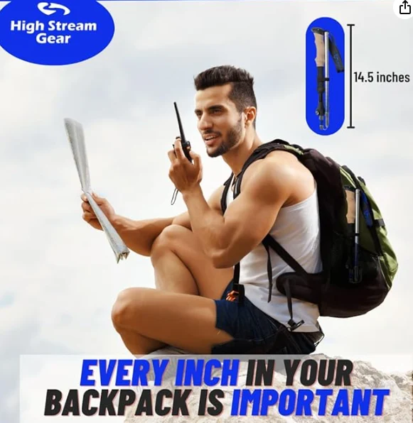 បង្គោលឡើងភ្នំសម្រាប់ការឡើងភ្នំការដួលរលំធ្លាក់ចុះដល់ 37 ស។ ម (14.5 អ៊ីញ) និងមានទម្ងន់ត្រឹមតែ 10 អោនដែលទុកឱ្យអ្នកដាក់សម្រាប់អ្នកសម្រាប់របស់អ្នកនិងឧបករណ៍ផ្ទាល់ខ្លួនរបស់អ្នក។