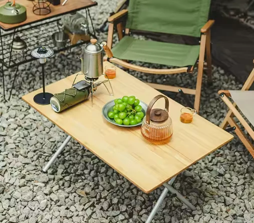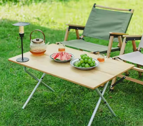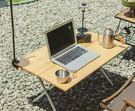 តុឫស្សីនិងតុអាលុយមីញ៉ូមដែលអាចបត់បានដែលអាចបត់បានដែលអាចមានភាពរឹងមាំរឹងមាំនិងបរិស្ថាន។ និងទឹកជ្រាបមានប្រសិទ្ធិភាព។ ថេប្លេតរលោងគឺល្អឥតខ្ចោះសម្រាប់ដាក់ភេសជ្ជៈអាហារសម្រន់ឬឧបករណ៍ចម្អិនអាហារ។
