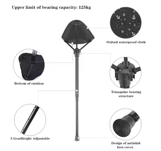 កៅអីធ្វើដំណើរដែលអាចបត់បានបានបញ្ចប់ដោយស្រទាប់ទ្វេដងនៅលើផ្ទៃកៅអីជើងកាមេរ៉ាដែលមានភាពរឹងមាំនិងមានស្ថេរភាព។
