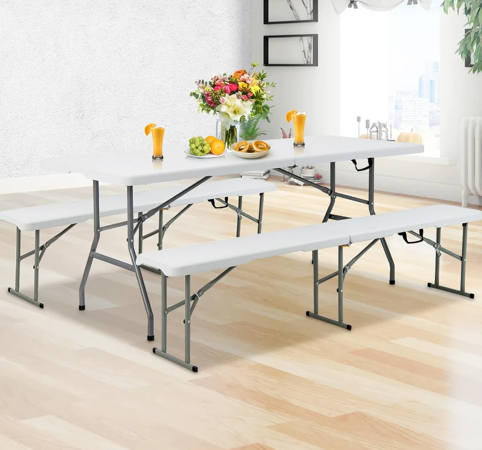 តារាងបោះជំរុំខាងក្រៅដែលមានគុណភាពខ្ពស់ការបត់ប្លាស្ទិចនៅលើតុបោះជំរំនៅលើតុបោះជំរំនៅខាងក្រៅផ្តល់នូវកន្លែងទូលាយសម្រាប់ផ្ទុកអាហារបង្អែមភេសជ្ជៈឬអាហារសម្រន់។ តារាងបត់នេះអាចផ្ទុកមនុស្សបានប្រហែល 8 នាក់ដើម្បីប្រមូលផ្តុំគ្នាសម្រាប់អាហារគ្រួសារឬអាហារពេលល្ងាចពិធីជប់លៀង។ ហើយគ្រប់ជ្រុងទាំងអស់នៃកំពូលតារាងត្រូវបានបង្គត់ដើម្បីការពារការរងរបួសដោយចៃដន្យ។