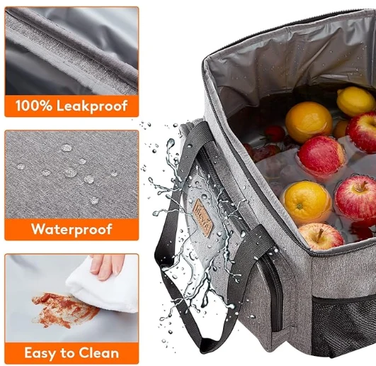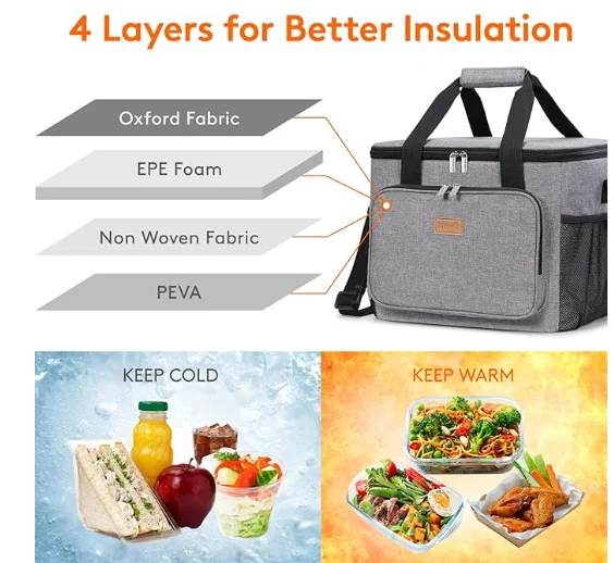 កាបូបអាហារដែលមានអ៊ីសូឡង់កាបូបអាហារថ្ងៃត្រង់ត្រូវបានផលិតចេញពីសម្ភារៈដែលមានអ៊ីសូឡង់ដែលអាចរក្សាម្ហូបនិងភេសជ្ជៈត្រជាក់ឬកក់ក្តៅក្នុងរយៈពេលជាង 5 ម៉ោង។ ក្រៅពីនេះស្រទាប់ខាងក្នុងត្រូវបានធ្វើពីចំណីអាហារថ្នាក់ Peva ថ្នាក់រៀនដូច្នេះអ្នកអាចដាក់អាហាររបស់អ្នកចូលក្នុងកាបូបដោយផ្ទាល់ដោយគ្មានការព្រួយបារម្ភ។ ស្នោដែលមានស្រាប់នៅក្នុង 6 មមអេមផ្តល់ការការពារយ៉ាងខ្លាំងដល់កុងតឺន័រអាហារនិងភេសជ្ជៈរបស់អ្នក។