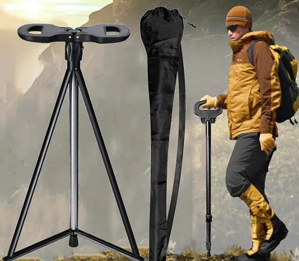 បុរសចំណាស់ដើរតាមដំបងដំបងដើរដែលអាចបត់បានដែលអាចបត់បានដោយមានកៅអីគឺប្រើប្រាស់បានយូរនៅពេលដើរនិងផ្តល់ភាពបត់បែនខណៈពេលដែលទ្រទ្រង់ទំងន់ពេញរាងកាយរបស់អ្នក។