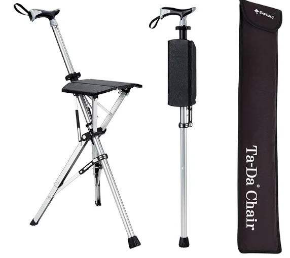 អំពៅរបស់បុរសចំណាស់ Alpenstock Trekking ការសម្រាកនិងដំបងឡើងភ្នំសម្រាប់ការគាំទ្រ។ ការរចនានេះដែលបម្លែងដំបងឡើងភ្នំទៅជាកៅអីដែលមានខ្ទាស់ផ្តល់ជូនសម្រាកសម្រាប់ជើងធុញទ្រាន់និងជង្គង់ក្នុងការជូនដំណឹងមួយភ្លែត។