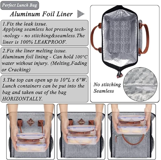 កាបូបអាលុយមីញ៉ូមក្រៅផ្ទះអញ្ជឹមមីងស្រទាប់គឺលេចធ្លាយ 100% ភស្តុតាងងាយស្អាតនិងមិនរលាយបាត់។ ក្រណាត់នីឡុងគឺធន់នឹងទឹកហើយខ្សែរ៉ូតកំពូលគឺមិនជ្រាបទឹក។ មុខងារនៃការជ្រាបទឹកនិងអ៊ីសូឡង់នៃកាបូបអាហារថ្ងៃត្រង់នេះគឺល្អបំផុត។