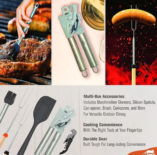 ការធ្វើត្រាប់តាមការបោះជំរុំ Cooping ។ ការពេញចិត្តរបស់អ្នកគឺជាអាទិភាពកំពូលរបស់យើង។ យើងបានរចនាយ៉ាងល្អិតល្អន់របស់យើងនូវគ្រឿងបន្លាស់និងគ្រឿងបន្លាស់របស់យើងឱ្យរឹងមាំនិងអាចទុកចិត្តបាន។ មិនថាអ្នកកំពុងកាត់ដេរការបោះជំរំឬគ្រាន់តែរីករាយនឹងការធ្វើឱ្យឆ្ងាយពីខាងក្រៅប្រដាប់ប្រដាជំរុំនេះគឺជាតម្រូវការចាំបាច់សម្រាប់តម្រូវការចម្អិនអាហារខាងក្រៅរបស់អ្នក។
