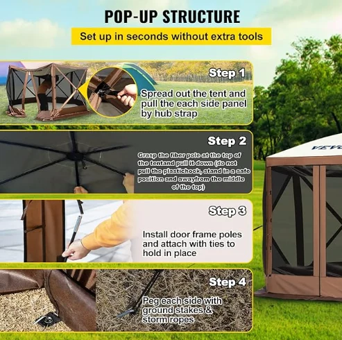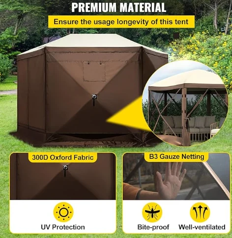ការបោះជំរុំ alopala ដែលមានភ្លៀងជ្រូកព្រៃ Canopy តង់តង់តង់ជំរុំ Gazebo បានធ្វើពីក្រណាត់អុកហ្វូដ 300 ក្រាមនិងសំណាញ់របស់មារៈបង់រុំ។ វាគឺជាអាយភីអេស 3 មិនជ្រាបទឹកភ័ស្តុតាងខាំនិងកាំរស្មីយូវី។ Gazebo '12' x 12 'Goosebo ផ្តល់នូវទំហំធំសម្រាប់ការប្រើប្រាស់ជំរកក្រៅផ្ទះ។